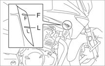 3.通過發動機副水箱上的標記“F”和“L” 來檢查發動機冷卻液的液位。